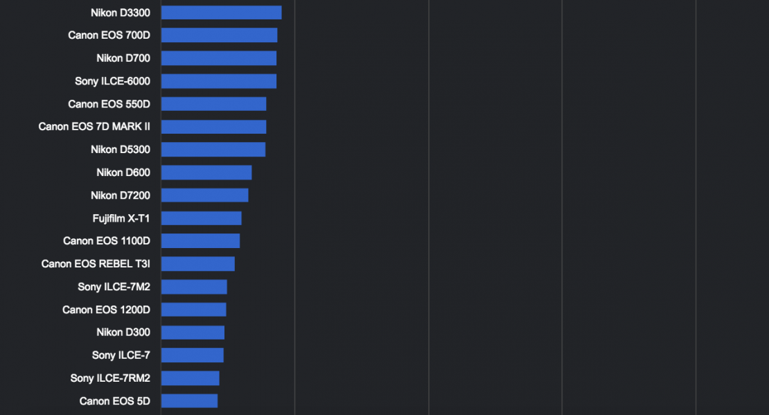Éste es el resultado de las 50 cámaras digitales de óptica intercambiable más utilizadas según esta analítica: