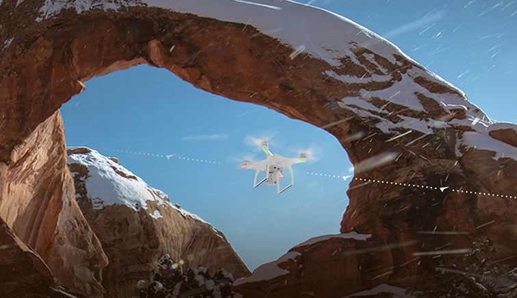 La nueva función ActiveTrack permite al Phantom 4 seguir automáticamente un sujeto en movimiento. Tan sólo hace falta marcar en la tableta alrededor del sujeto que quieras seguir, y el ordenador abordo construirá un modelo 3D del sujeto en cuestión y empezará a seguirle inmediatamente.