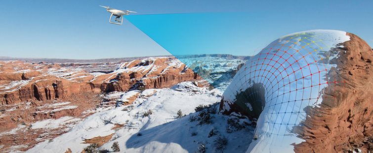 El Phantom 4 dispone de 5 cámaras, la cámara principal 4K es la que realiza la grabación pero tiene otras dos cámaras en la parte frontal, y 2 cámaras en la parte trasera, además de un sónar. Utilizando estas cámaras y el sónar, el Phantom 4 es capaz de crear modelos 3D de lo que tiene alrededor y utilizar estos datos para volar de forma automática, detectando obstáculos que están a una distancia de hasta 15 metros.